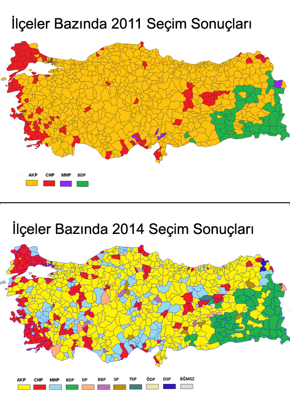 2011-2014 seçim sonuçları ilçe bazlı karşılaştırması: